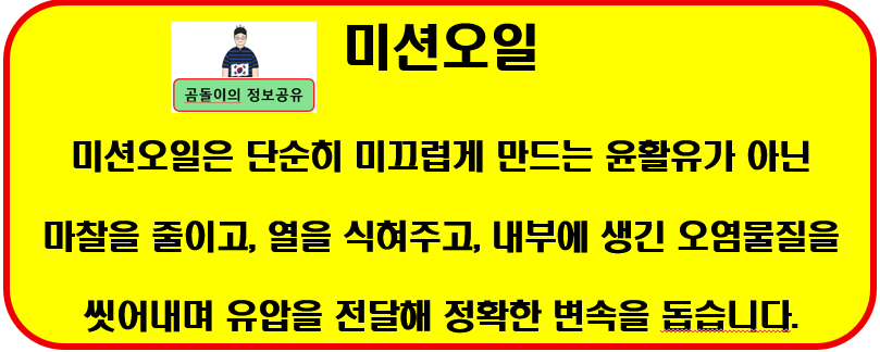 차가 예전보다 덜 부드럽게 느껴진다면 그건 단순한 기분 탓이 아닐 수 있습니다. 미션오일은 눈에 잘 보이지 않지만 주행 질감을 가장 크게 좌우하는 중요한 요소입니다. 조금만 관심을 기울이면 큰 고장을 예방할 수 있고, 차를 훨씬 안전하고 편안하게 탈 수 있습니다. 다음번 차량 정비 일정에는 엔진오일 옆에 미션오일 점검도 함께 적어두셔서 점검해 보시는건 어떨까요!!! 이것으로 오늘 포스팅을 마무리합니다.