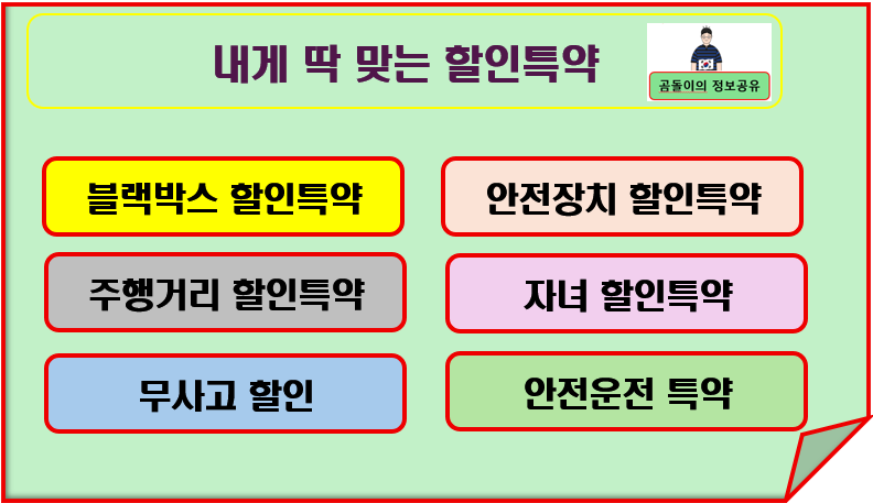 - 특약 적용 여부 ▶ 블랙박스 장착, 주행거리 특약 등을 활용하면 할인 가능.